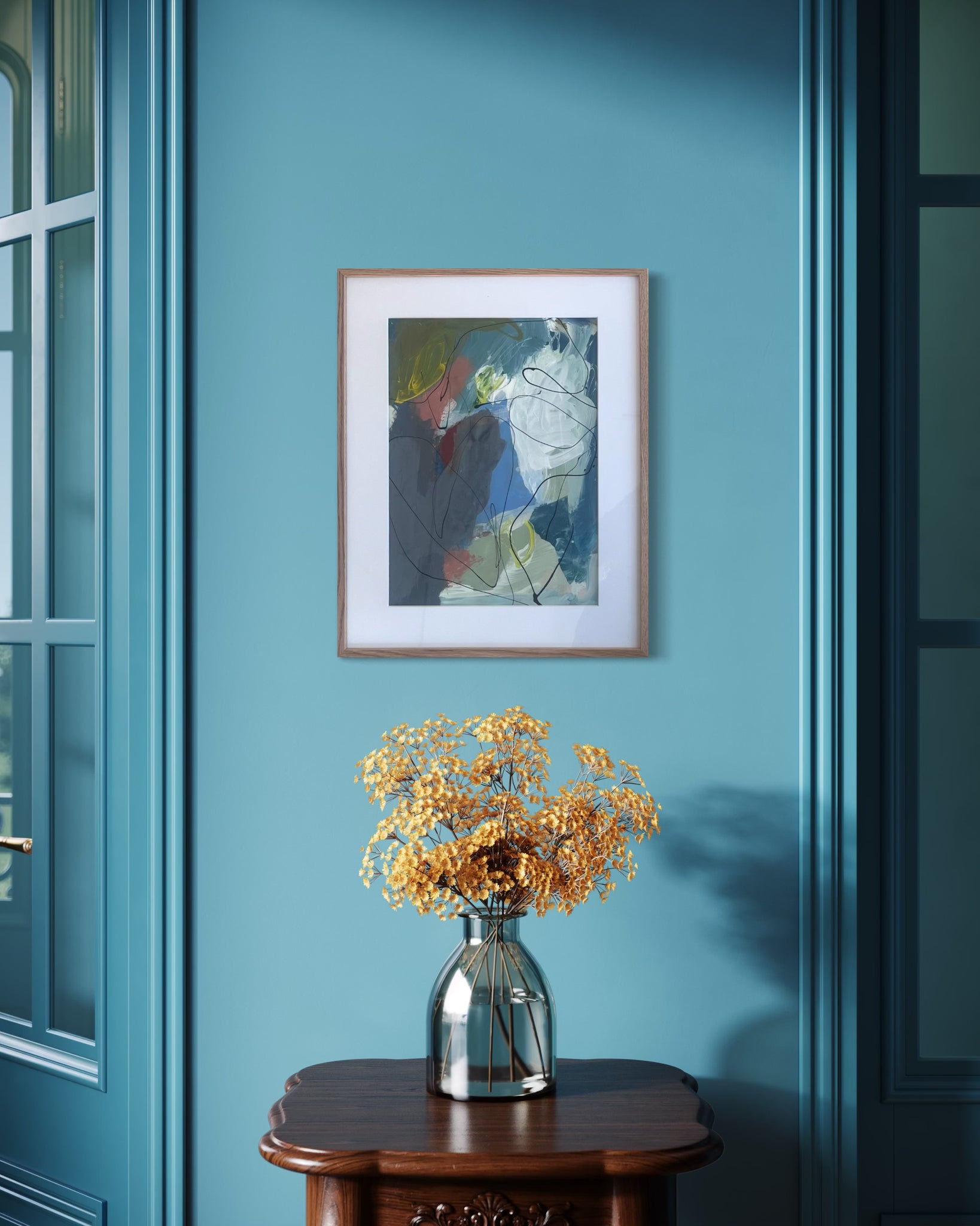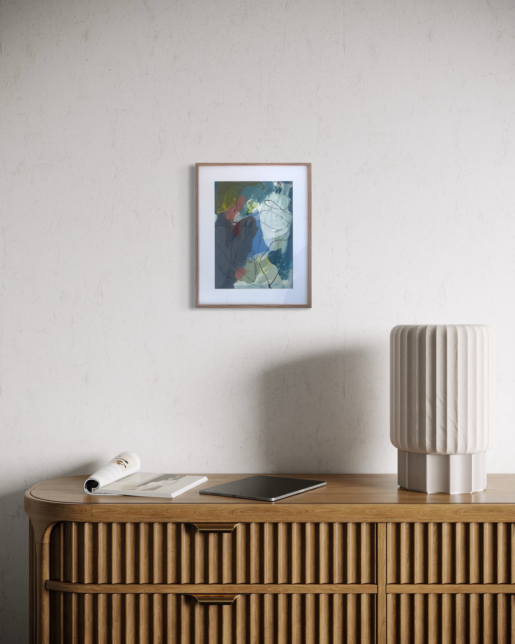 Originalt maleri på papir. Mål: A3. Indrammet med passepartout