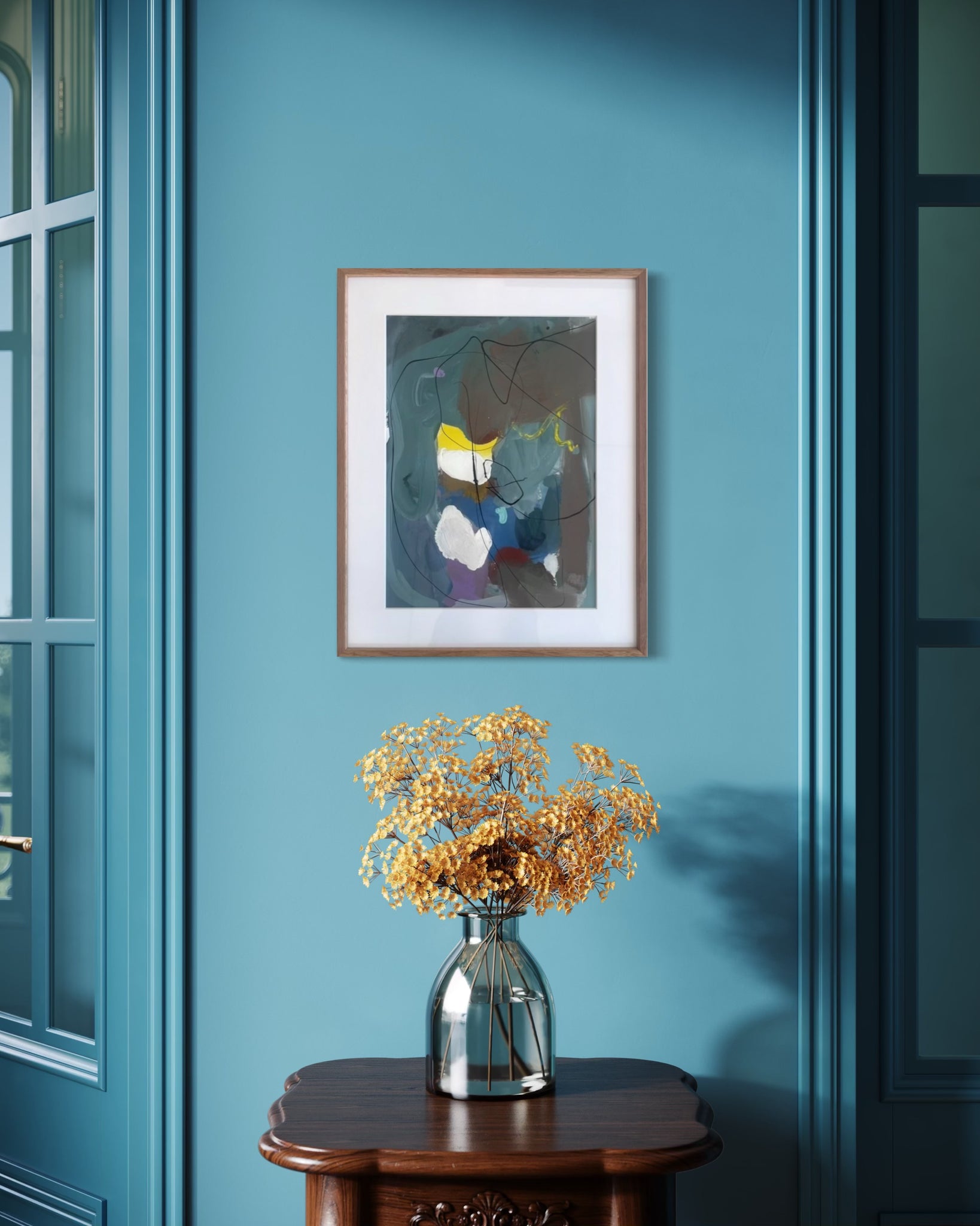 Originalt maleri på papir. Mål: A3. Indrammet med passepartout