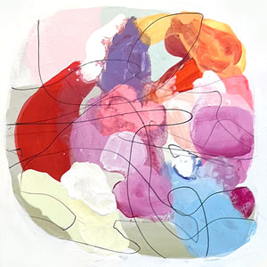 Kendetegnet for mine malerier er orden og kaos, blandet med leg, alvor og intuitiv spontanitet. Mine malerier males på bomuldlærred i eksklusiv kvalitet. Jeg bruger professionelle kunstnerfarver med høj pigment, så farverne kan holde sig klare og friske i mange år. For at være sikker på at du får et maleri som kan holde til at være en del af din hverdag, sollys fra vinduet, røg i køkkenet osv, så lakerer jeg mine malerier med mat lak.