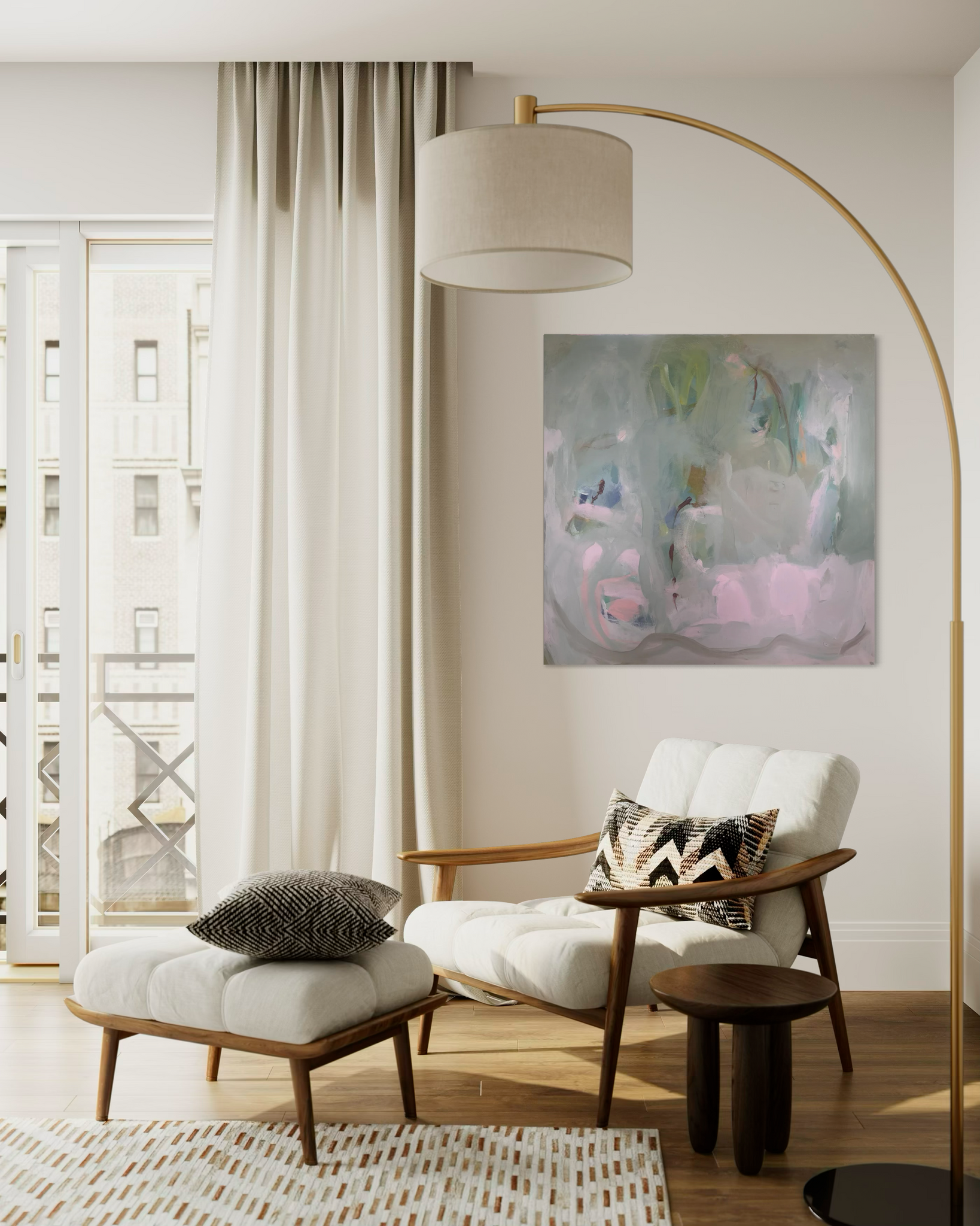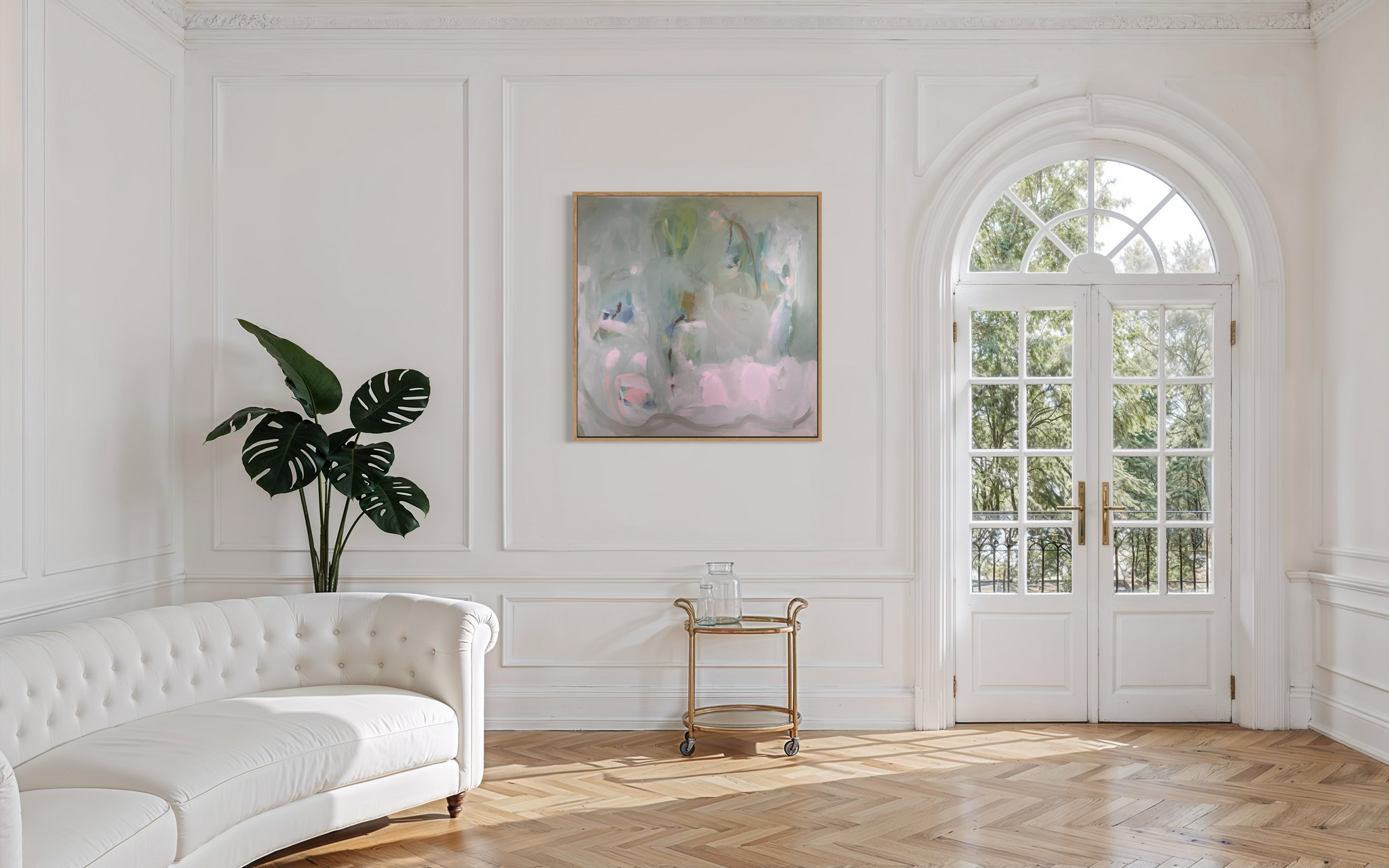 Det er altid muligt at låne et eller flere malerier med hjem, så du kan se hvordan de passer ind hos dig. Bor du langt fra mit galleri, kan du sende et foto af rummet hvor du mangler kunst. Så kan jeg sætte de ønskede malerier ind på dit foto.