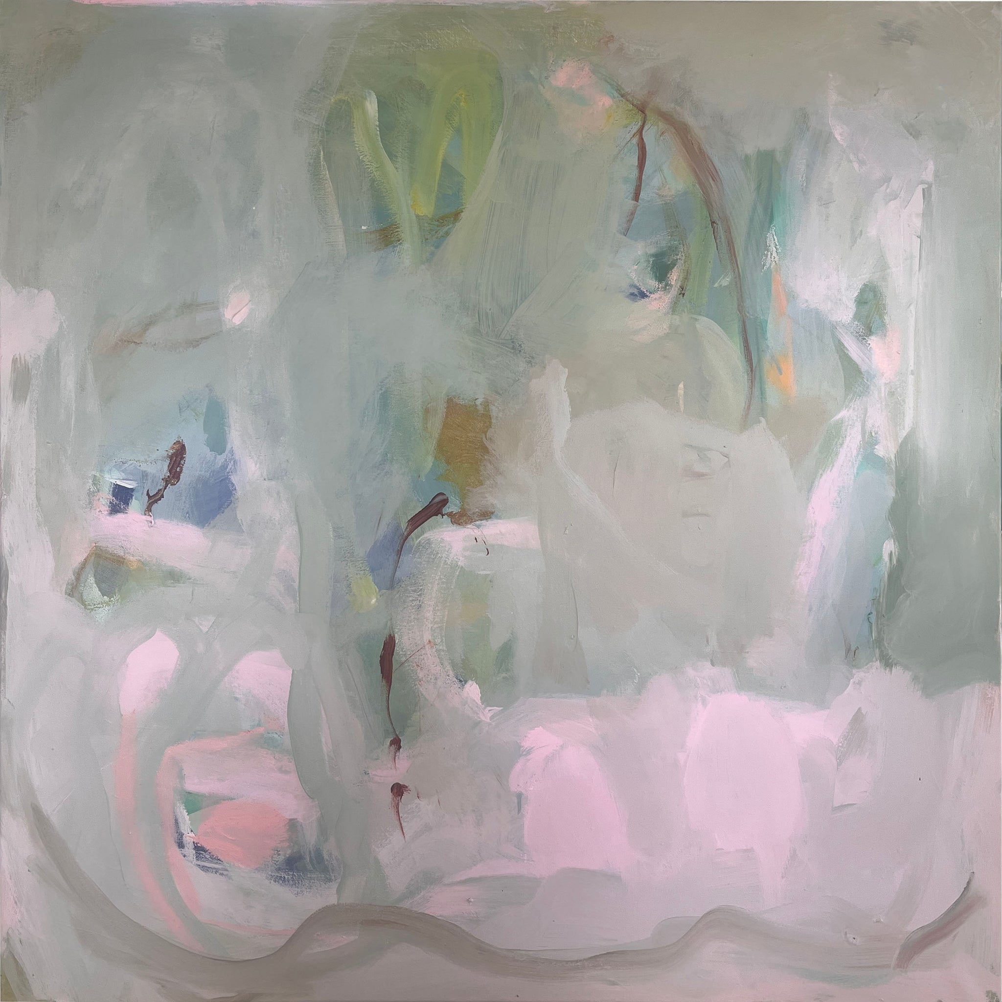 "Quiet Morning" er et abstrakt maleri, hvor jeg har tænkt på et sted fyldt med fred og ro, det har jeg ofte behov for. For mig er det som at se på et fredfyldt landskab, hvor jeg får følelsen af at alt er godt - som en stille morgen hvor man kan vågne langsomt.
