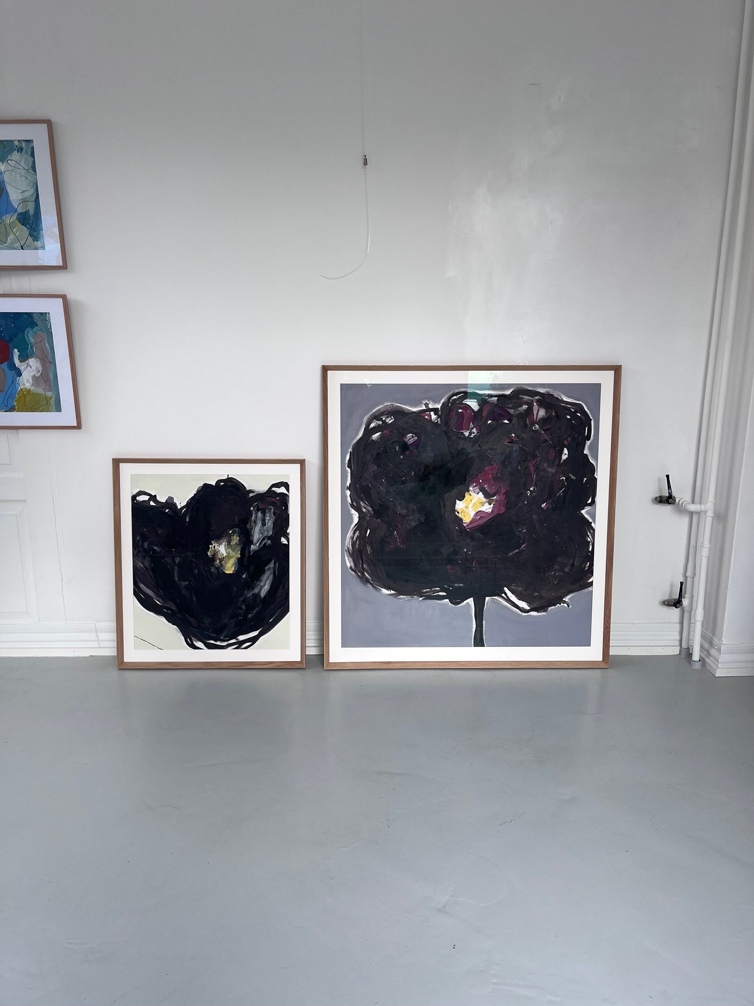Mine seneste serie af blomstermalerier kalder jeg POP FLOWERS. Serien er lavet med stor inspiration fra Andy Warhol og hans kendte popart serigrafier af Dronning Margrethe, Marilyn Monroe mf. Han forvrængede sine idoler og lavede dem næsten endimentionelle, så værkerne fremstod abstrakte, farverige og levende på deres helt egen måde. Mine blomstermalerier er dog originale værker, som jeg har malet med akryl på lærred. Jeg får dem indrammet i glas og ramme, for at give dem et let og elegant udtryk.